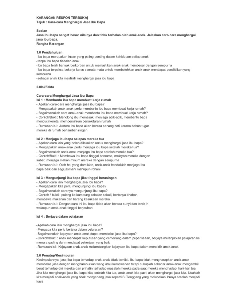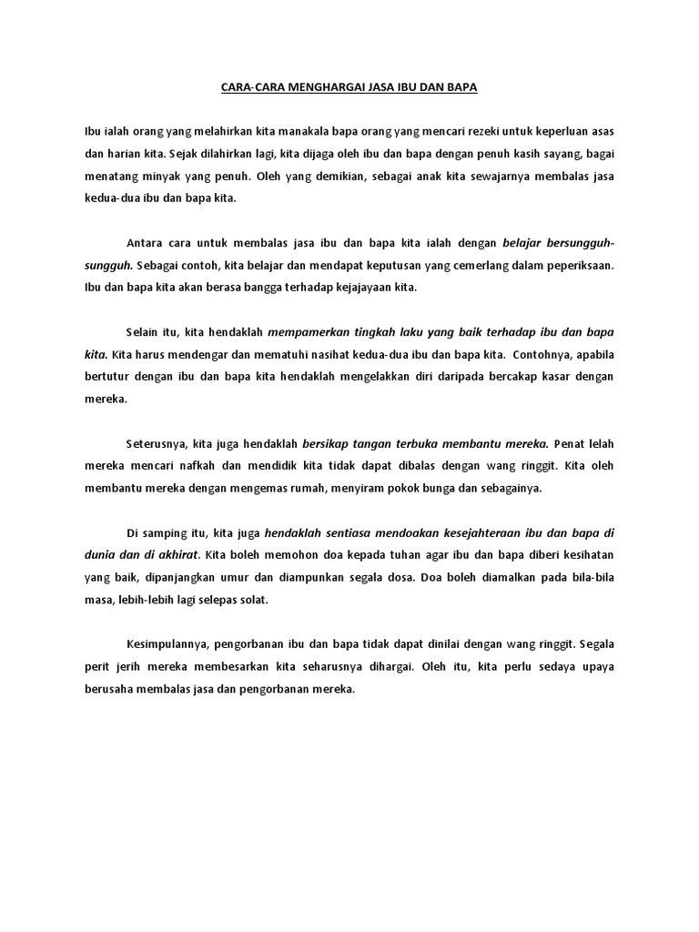 Karangan Spm Cara Cara Menghargai Jasa Ibu Bapa